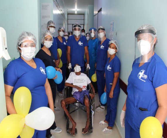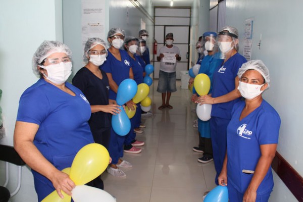 A saída Tadeu Pereira dos Santos e Antônio da Luz Sousa de Andrade, ambos 60 anos, foi comemorada com aplausos e muita emoção de parentes e a equipe de saúde que os acolheram durante a internação.