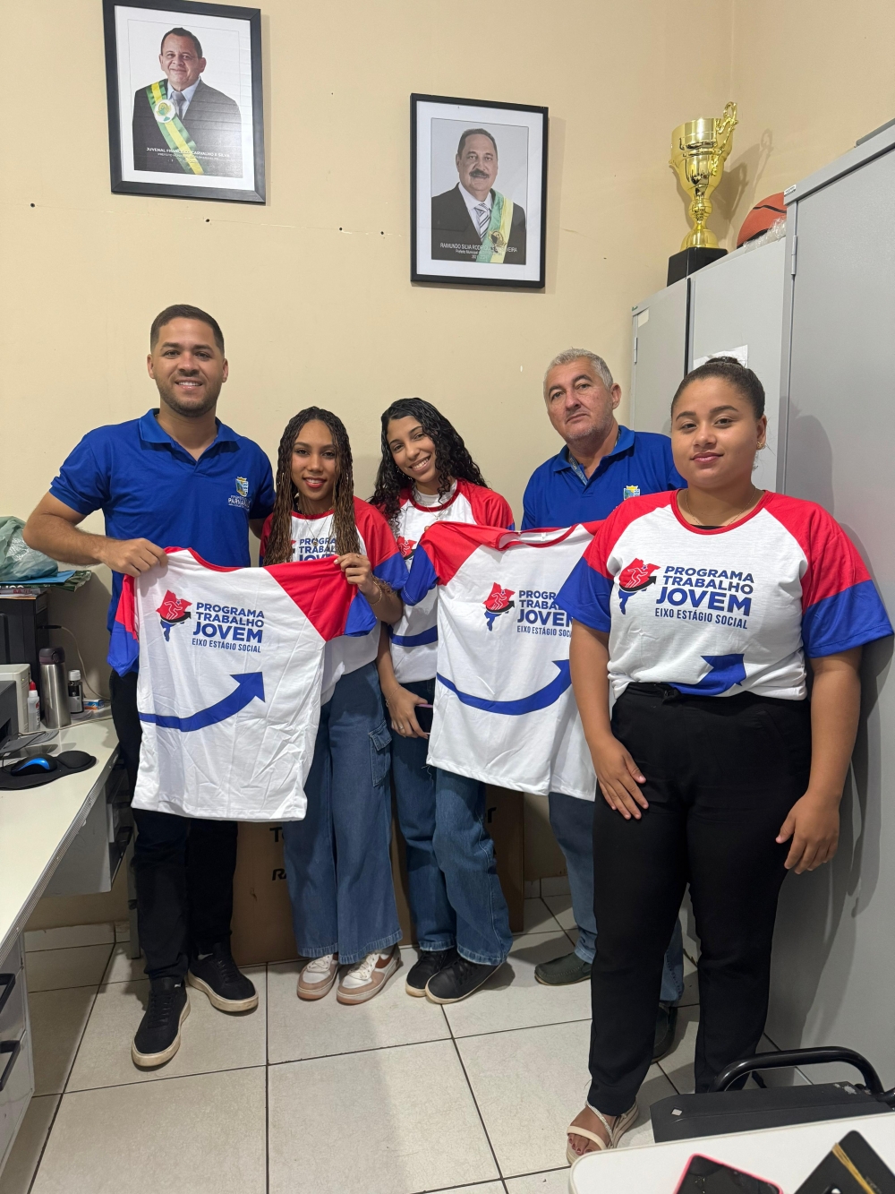 A Prefeitura de Parnarama, por meio da Secretaria de Esportes e Juventude, realizou na manhã desta quinta-feira (21) a entrega dos kits de camisas aos estagiários do Programa Trabalho Jovem. A solenidade ocorreu na sala da própria secretaria, localizada na sede da Prefeitura, no centro da cidade.