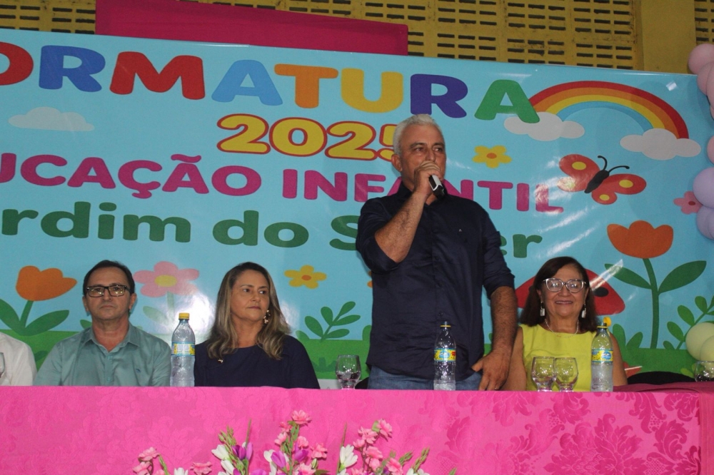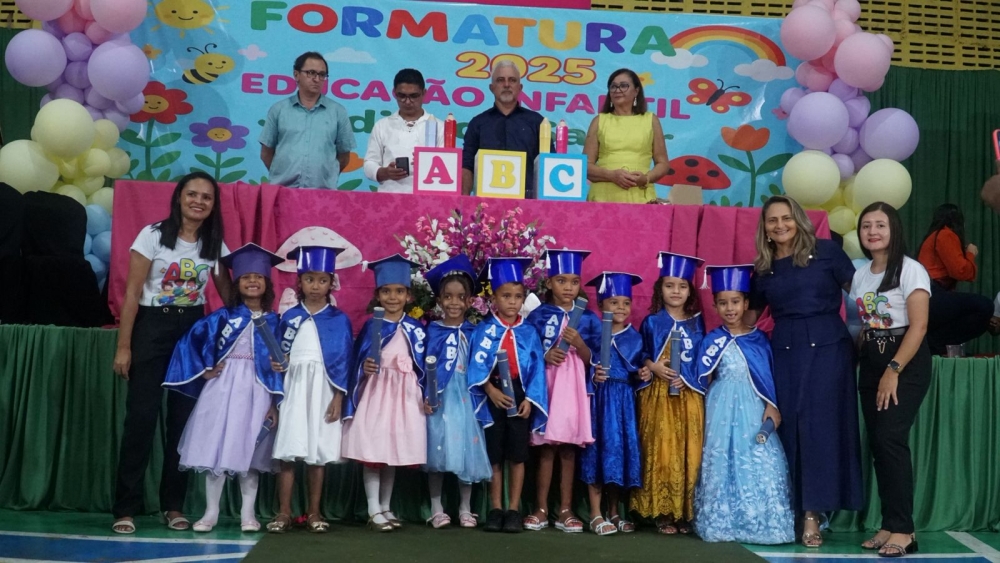 A formatura contou ainda com a presença de diversas autoridades municipais, entre elas a secretária de Educação, Gábia Silveira, o secretário adjunto de Educação, José Pinheiro, o vereador e presidente da Câmara Municipal, Joílson Soares, e o chefe de gabinete, Maciel André, que representou o prefeito Juvenal Silva, além de coordenadores pedagógicos, diretores e professores da rede municipal.
