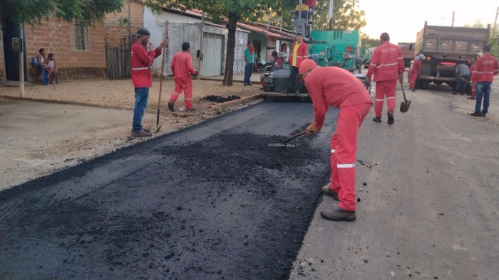 O prefeito municipal, Raimundo Silveira, esteve acompanhando os representantes da empresa LUCENA, que estão trabalhando na obra da pavimentação asfálticas nas ruas do bairro Agrovema, na tarde desta quinta-feira (03).
